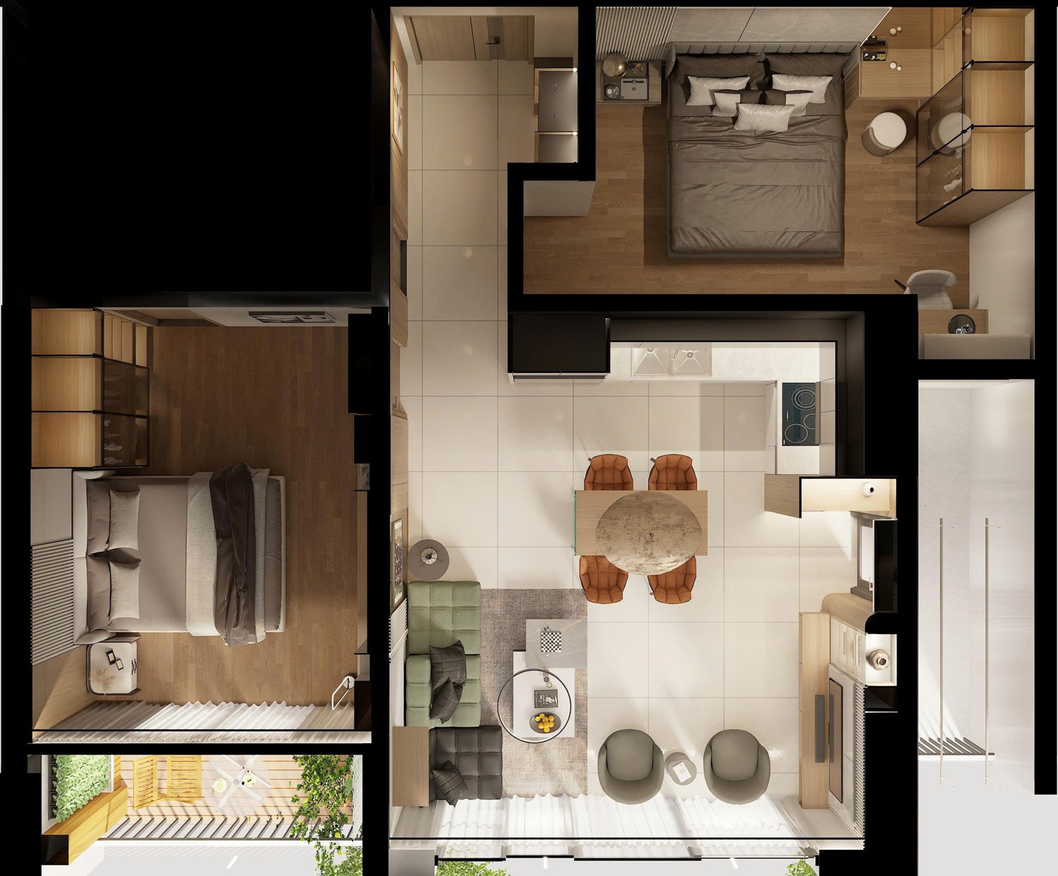 - Thiết kế tối ưu công năng: phòng ngủ, phòng khách, phòng bếp đều được bố trí khoa học, vừa tiện nghi vừa thẩm mỹ.