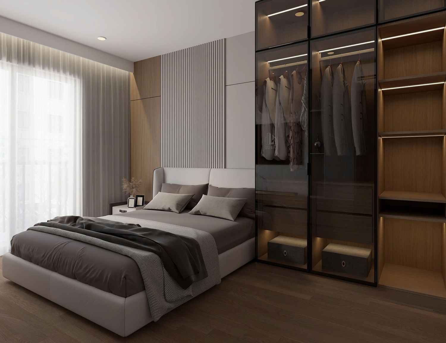 - Điểm nhấn từ nội thất gỗ cao cấp, tủ âm tường, kệ trang trí, giấy dán tường nghệ thuật… mang lại sự đẳng cấp khác biệt.
